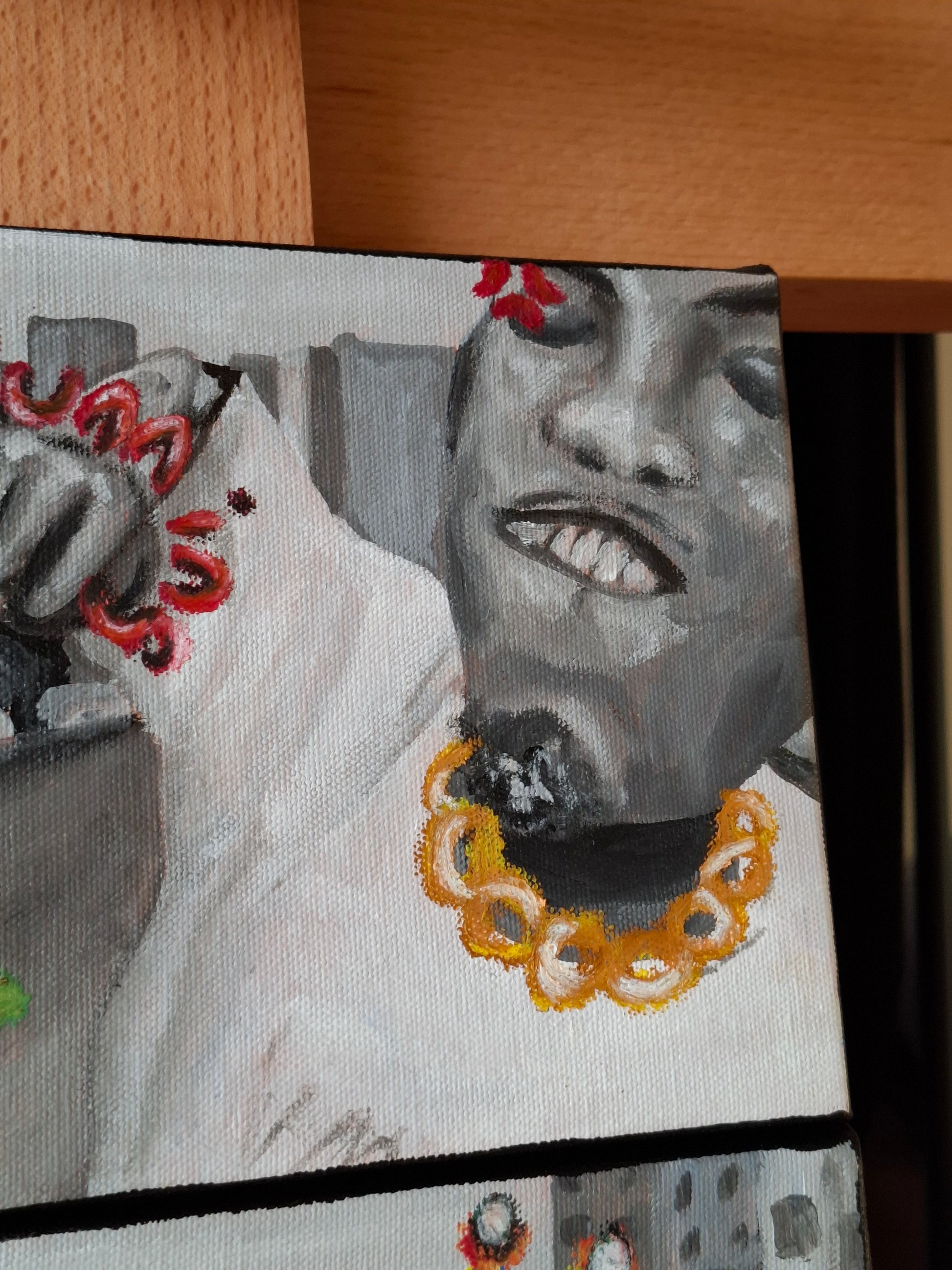 (3 mini paintings making one scene. Running the streets recreates a boy trying to chase after his dreams but ending up running the streets instead of running after his dreams).